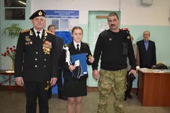 За особые успехи, активное участие в военно-исторических, патриотических, спортивных мероприятиях на уровне города, области кадет 11 класса Севастьянова Алина награждена памятным знаком Всероссийской общественной организации морских пехотинцев "Тайфун" "Юный защитник Отечества". Мы поздравляем Алину и желаем дальнейших успехов!!!