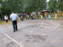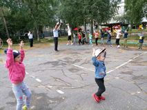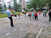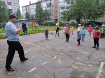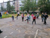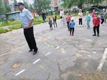 Праздник начался с торжественного построения и дети, под руководством внимательных,добрых,зажигательных сотрудников полиции сделали разминку.