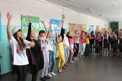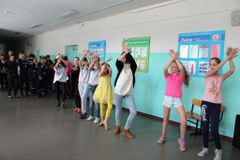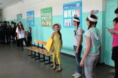 1 апреля в школе состоялось открытие Спортивного клуба и двухмесячника по спортивно-оздоровительной работе.Творческая группа 6 класса показали Сказку о глупом мышонке(известную историю на спортивный лад).Эта история о том, как у Мышки родился хилый мышонок, и Мышка-мать звала в гости Грача-старого врача,Утку, Лошадь.Умные звери давали советы Мышке-маме , как Мышонку стать здоровым, спортивным.А ещё они посоветовали выбрать школу , "где есть спорт и физкультура,чтоб Мышонка записать." А затем девочки провели спортивно-танцевальный флеш-моб. Праздник получился весёлым, спортивным,зажигательным!