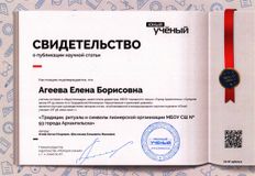 -публикация «Школьный музей как средство организации внеурочной деятельности в сборнике «Школьные музеи: внеурочная деятельность» г. Северодвинск, апрель 2021г., издательство МАУ ДО ДЮЦ (http://sevskduc.ru/wp-content/uploads/2021/05/Sbornik_2021_Shkolnye_muzei_vneurochnaya_deyatelnost.pdf);