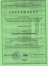 -выступление на городском семинаре «Роль проектно-исследовательской, экскурсионно-краеведческой деятельности, школьных музеев и музейных объединений в патриотическом воспитании подрастающего поколения»- 5 апреля 2019 г. (Сертификат Департамента образования Администрации МО «Город Архангельск»).